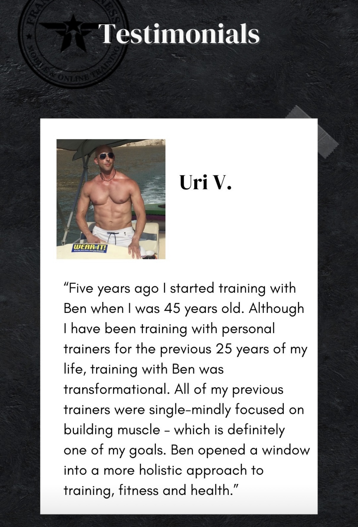 "Training with Ben was transformational. Ben opened a window into a more holistic approach to training, fitness and health."